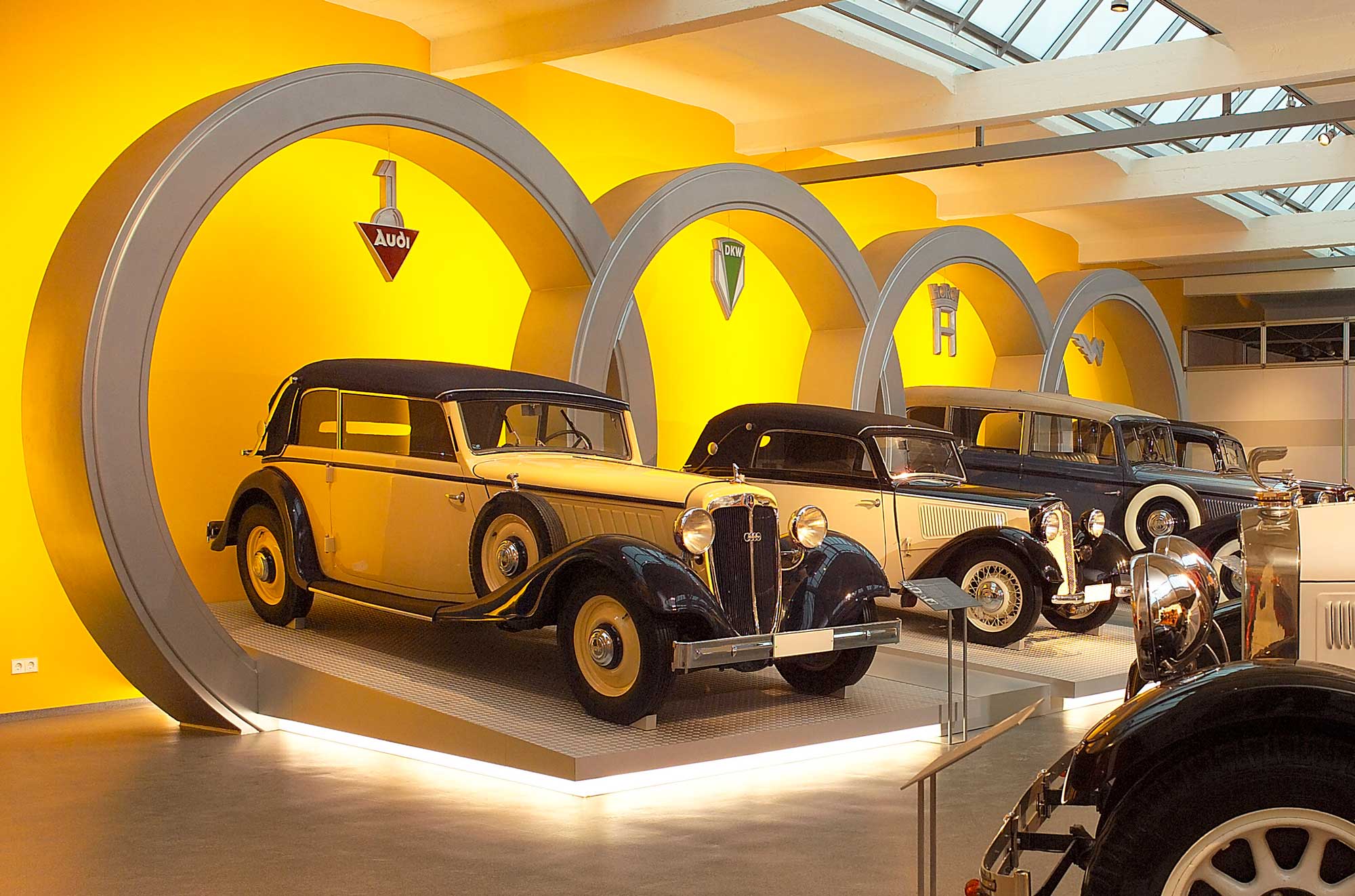 The August Horch Museum is located on the very ground of the first Audi factory, at the origin of great automotive history. Later on, DKW and Trabant vehicles were produced in these halls.